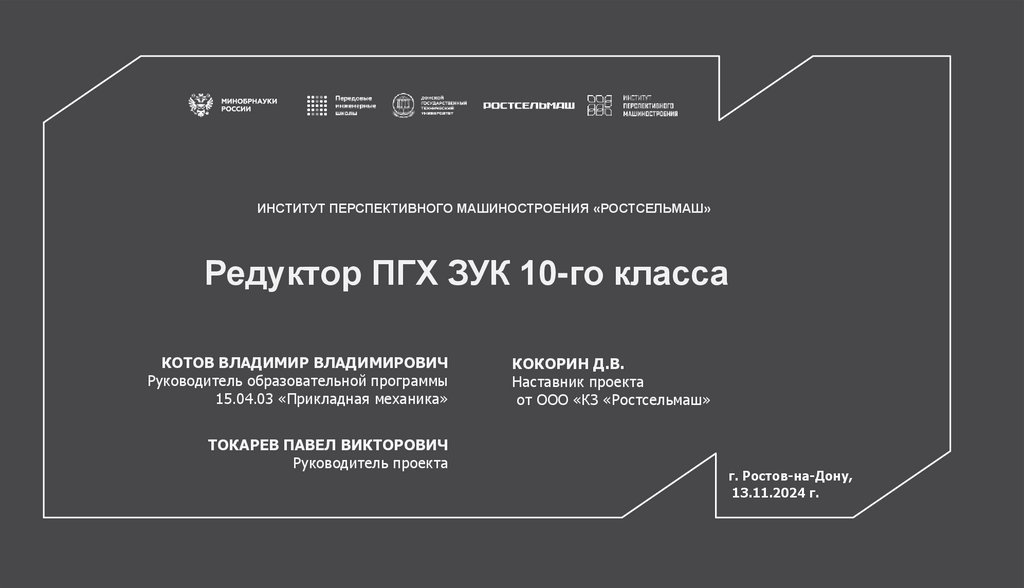 ИНСТИТУТ ПЕРСПЕКТИВНОГО МАШИНОСТРОЕНИЯ «РОСТСЕЛЬМАШ»Редуктор ПГХ ЗУК 10-го класса