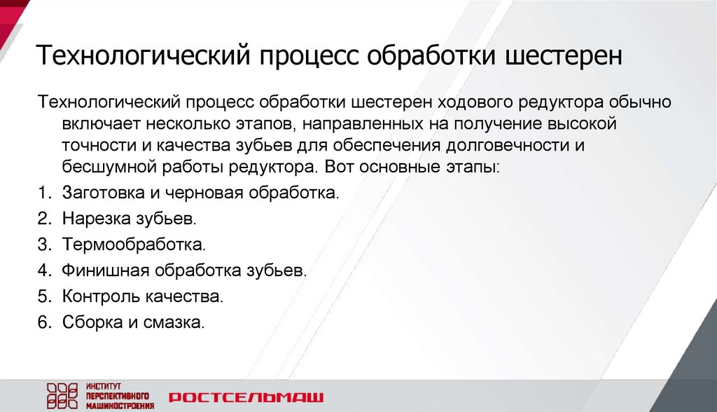 Технологический процесс обработки шестеренТехнологический процесс обработки шестерен ходового редуктора обычно