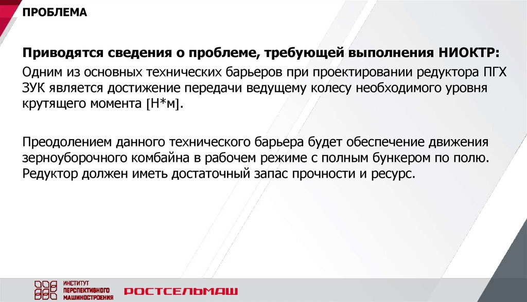 ПРОБЛЕМАПриводятся сведения о проблеме, требующей выполнения НИОКТР: