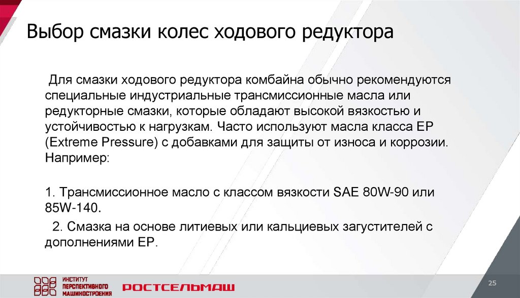 Выбор смазки колес ходового редуктораДля смазки ходового редуктора комбайна обычно рекомендуются