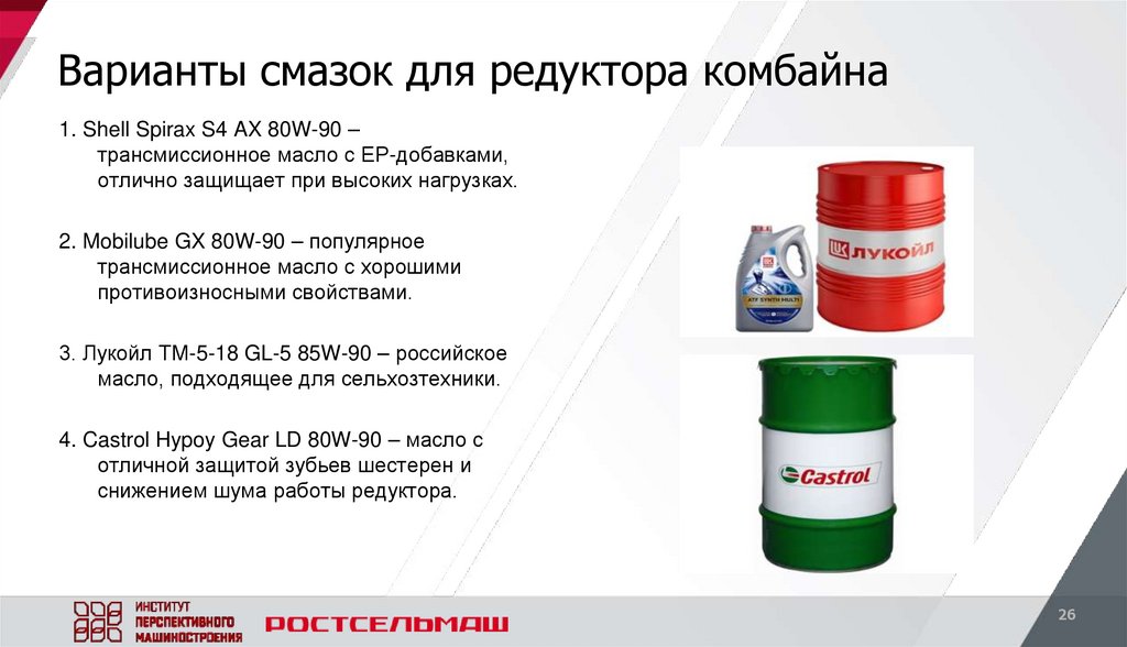 Варианты смазок для редуктора комбайна1. Shell Spirax S4 AX 80W-90 –
