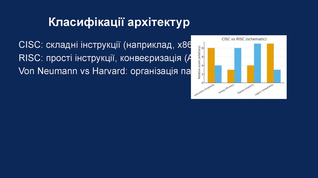 Класифікації архітектурCISC: складні інструкції (наприклад, x86)