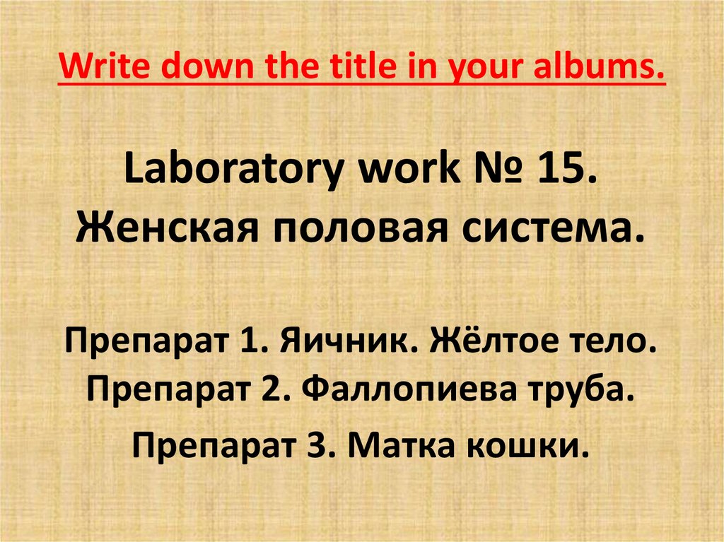 1. Laboratory work № 15. Женская половая система. Препарат 1. Яичник. Жёлтое тело. Препарат 2. Фаллопиева труба. Препарат 3. Матка