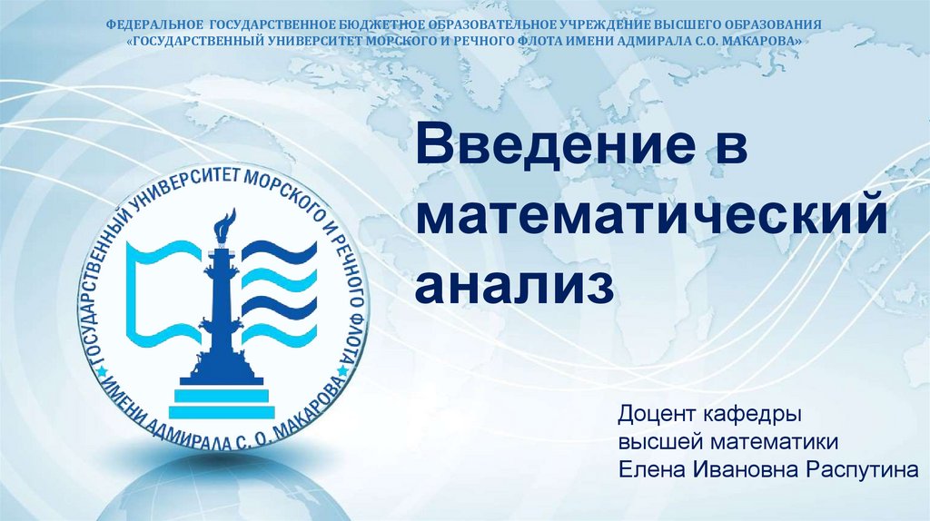 ФЕДЕРАЛЬНОЕ ГОСУДАРСТВЕННОЕ БЮДЖЕТНОЕ ОБРАЗОВАТЕЛЬНОЕ УЧРЕЖДЕНИЕ ВЫСШЕГО ОБРАЗОВАНИЯ«ГОСУДАРСТВЕННЫЙ УНИВЕРСИТЕТ МОРСКОГО И РЕЧНОГО ФЛОТА ИМЕНИ АДМИРАЛА С.О. МАКАРОВА»