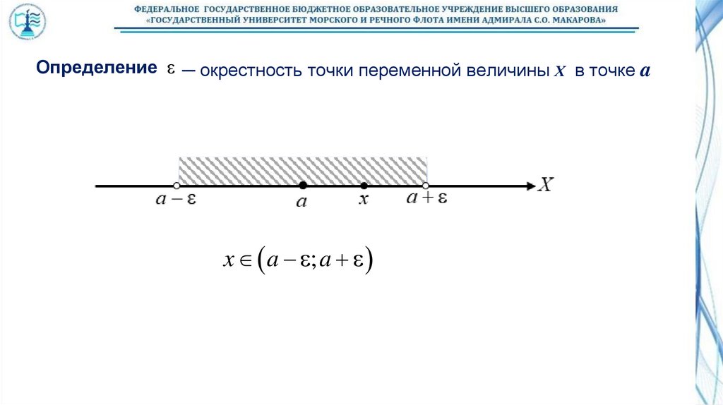 Определение ─ окрестность точки переменной величины Х в точке ax a ; a