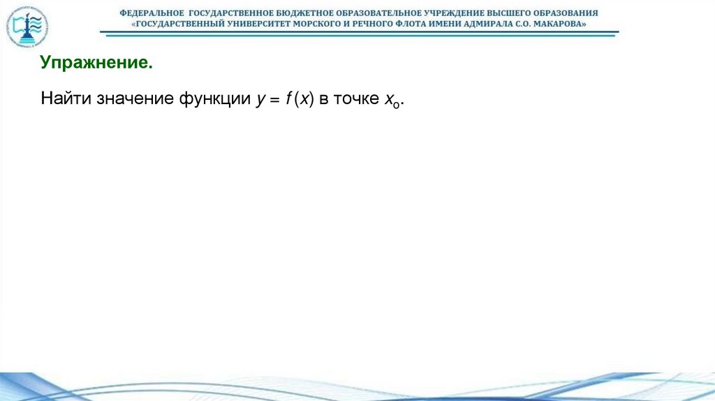 Упражнение.Найти значение функции y = f (x) в точке xo.