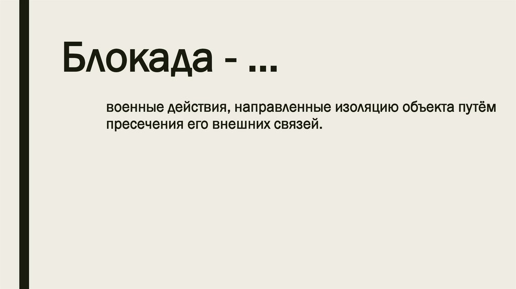 военные действия, направленные изоляцию объекта путёмпресечения его внешних связей.