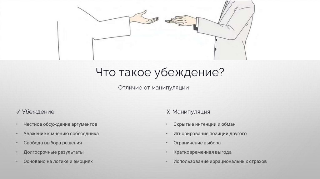 Что такое убеждение?Отличие от манипуляции