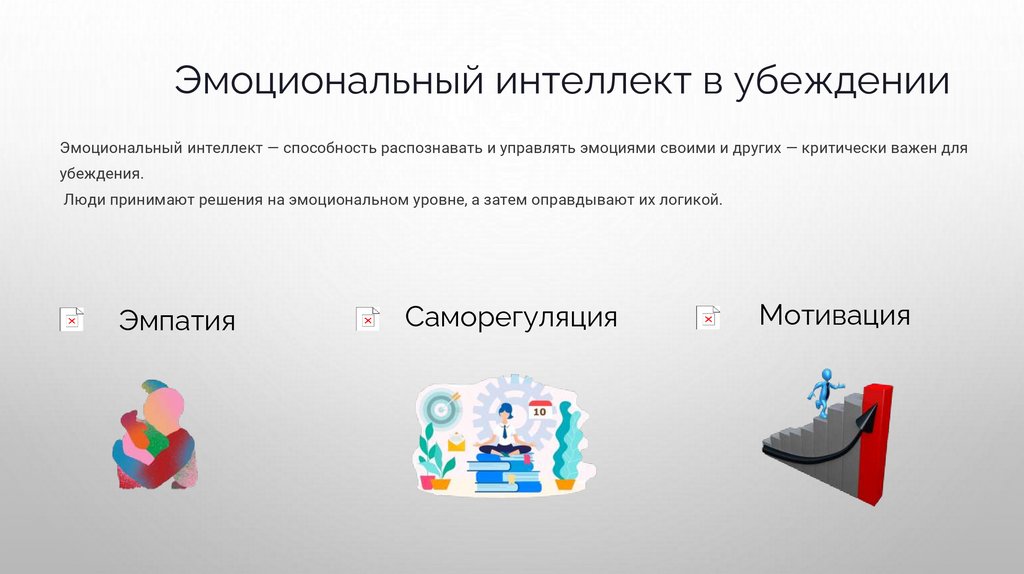 Эмоциональный интеллект в убежденииЭмоциональный интеллект — способность распознавать и управлять эмоциями своими и других — критически важен для
