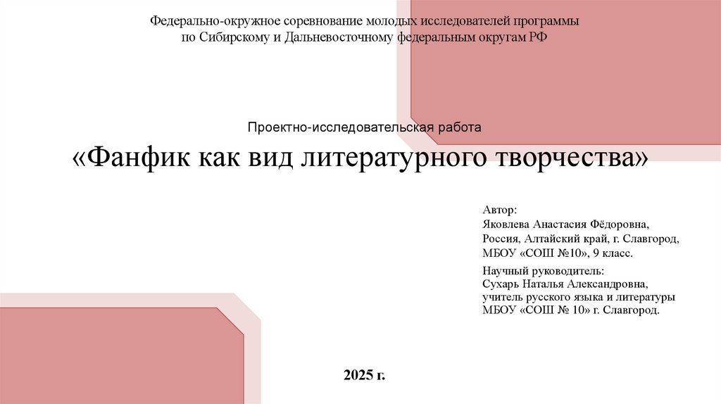 Федерально-окружное соревнование молодых исследователей программыпо Сибирскому и Дальневосточному федеральным округам РФ