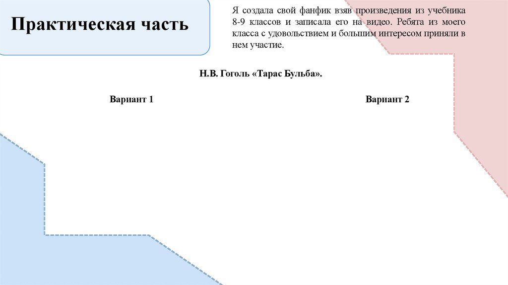 Практическая частьЯ создала свой фанфик взяв произведения из учебника