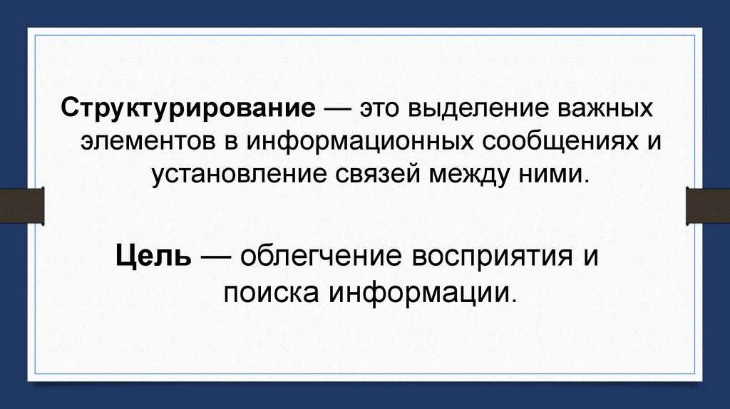 Структурирование — это выделение важныхэлементов в информационных сообщениях и