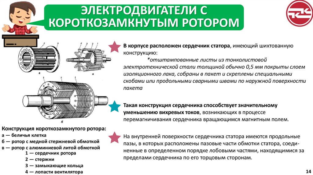 ЭЛЕКТРОДВИГАТЕЛИ С КОРОТКОЗАМКНУТЫМ РОТОРОМ (слайд 13)