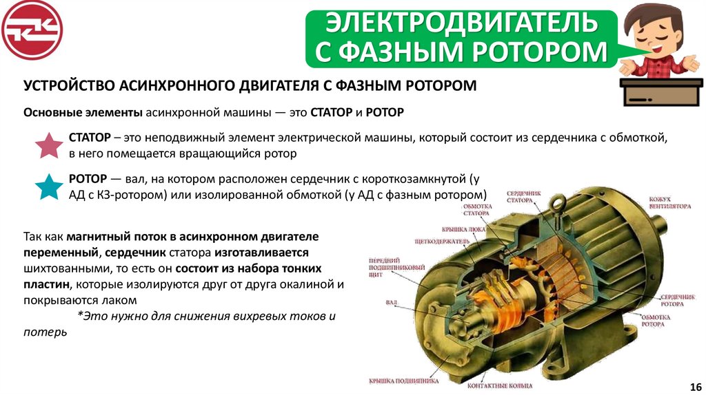 ЭЛЕКТРОДВИГАТЕЛЬ С ФАЗНЫМ РОТОРОМ (слайд 16)