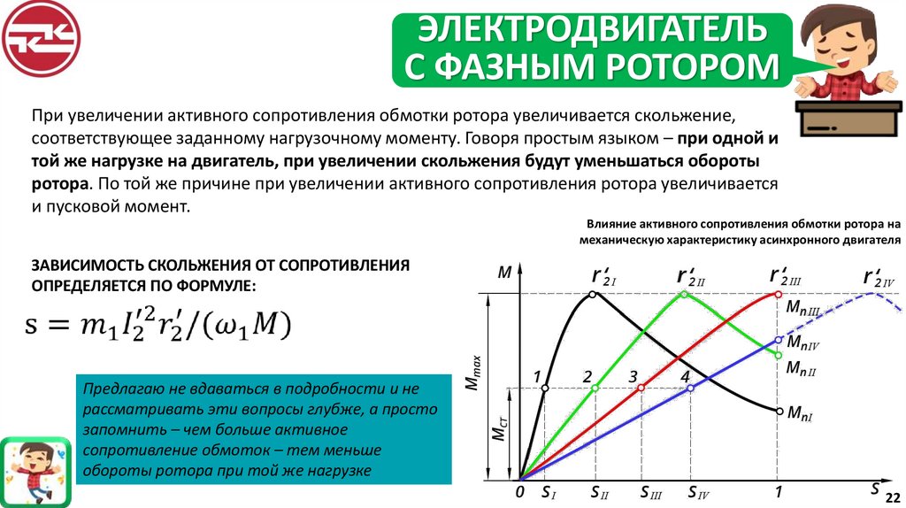 протекающий через резисторы ротора, преобразуется в тепло, то есть КПД двигателя в