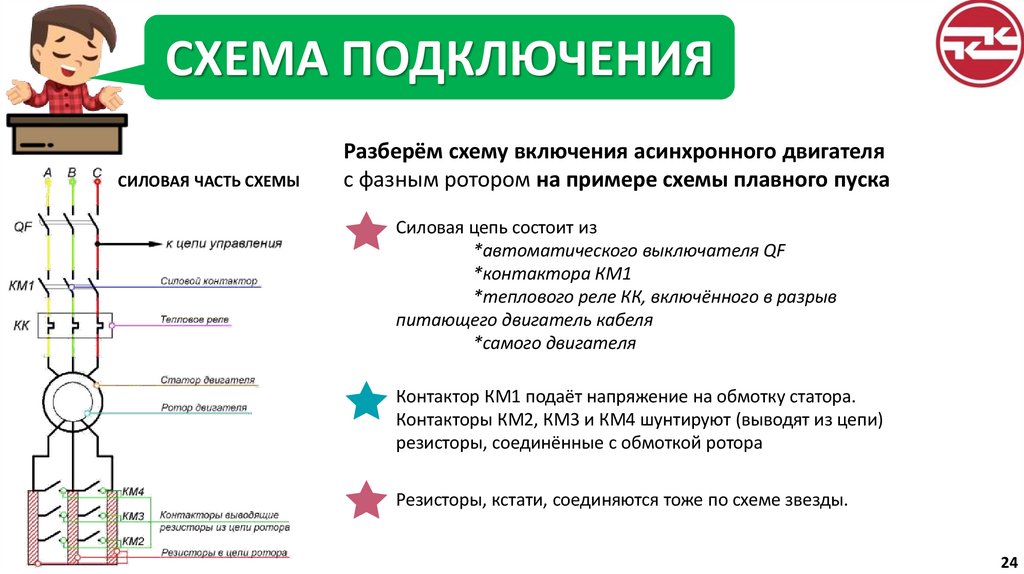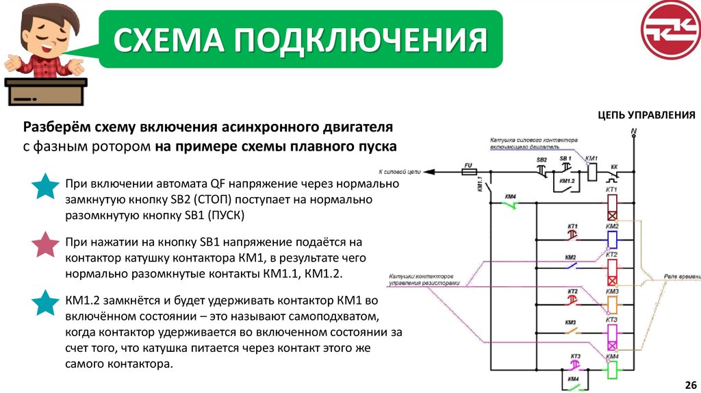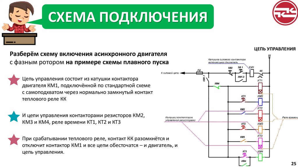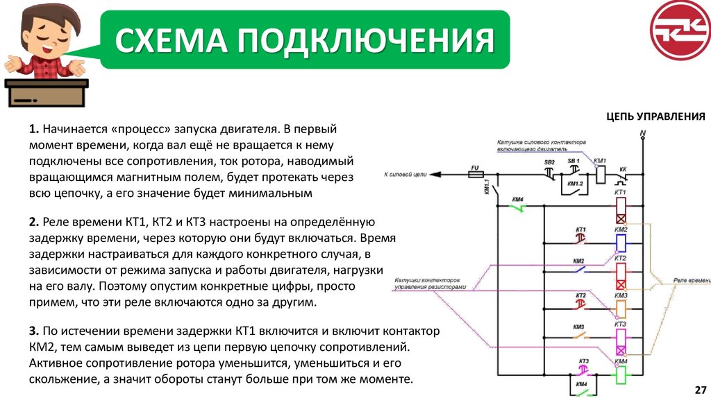 задержки КТ2 сработает, включит КМ3 и выведет из цепи ротора