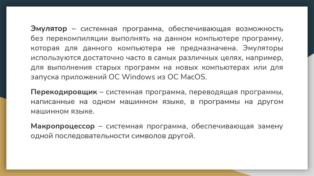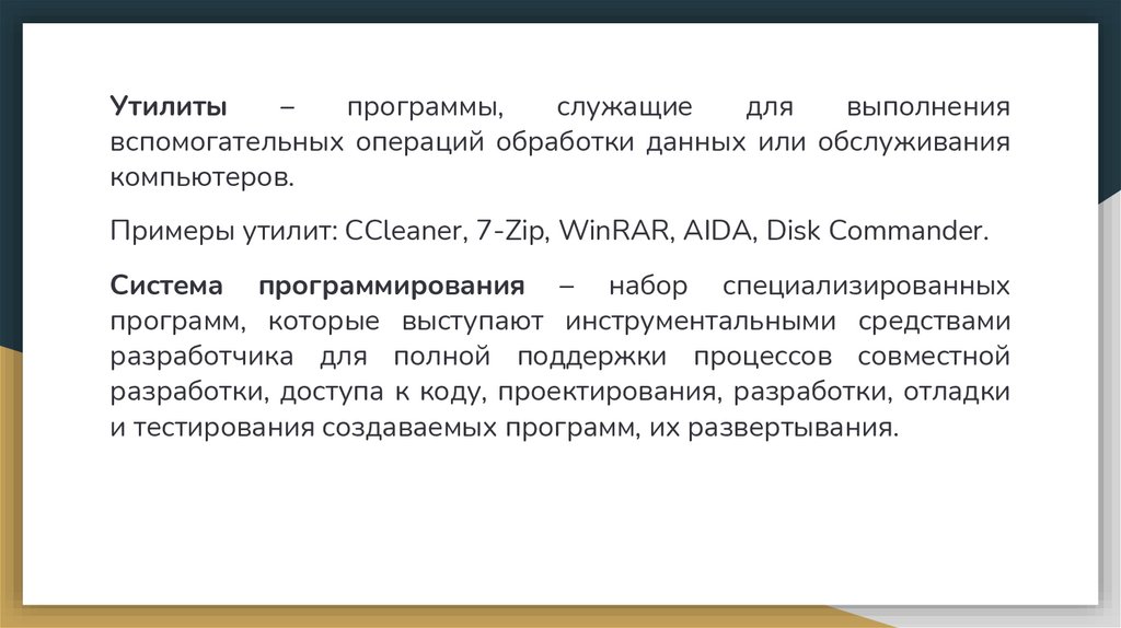 Традиционная классификация системного ПО:● управляющее ПО – организует корректное функционирование