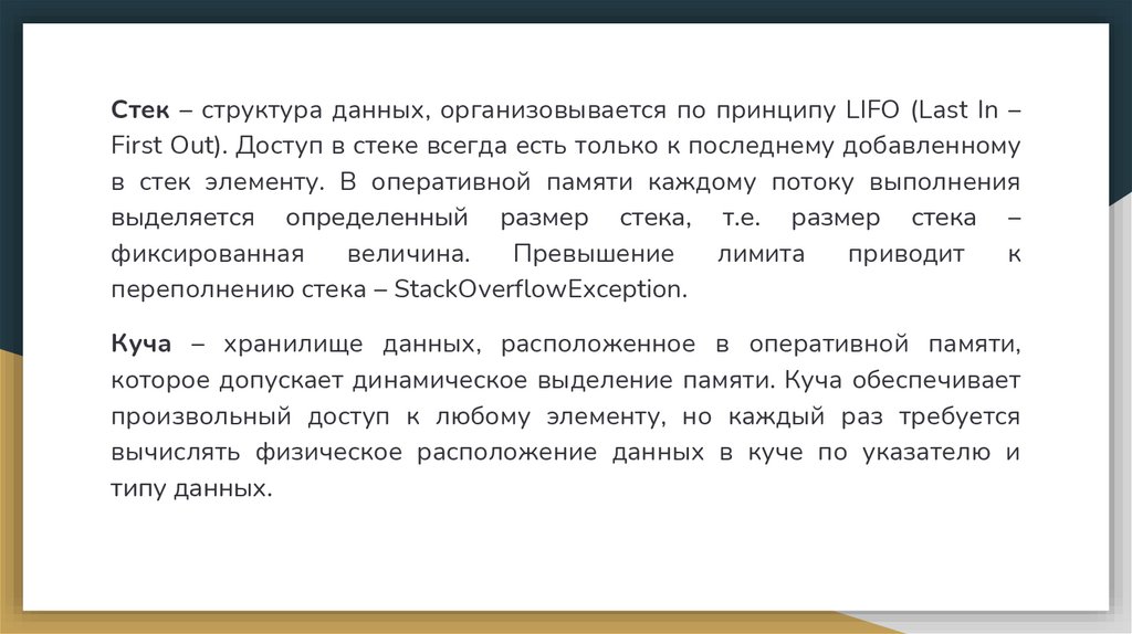 располагается в основной памяти и представляет собой