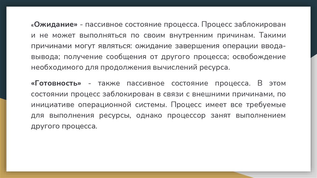 которые переходят от одного процесса к другому.