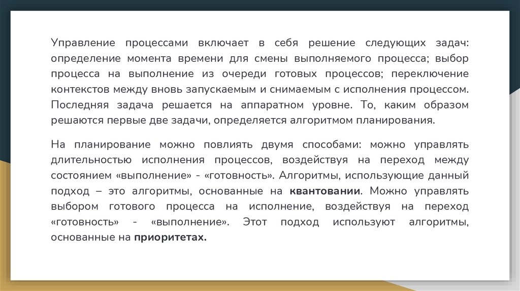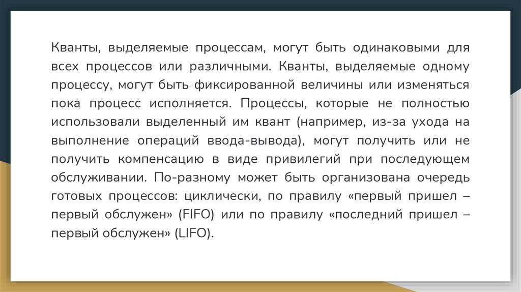 своим приоритетам.. Обслуживание, то есть назначение квантов процессорного