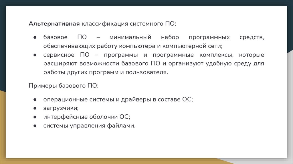 Альтернативная классификация системного ПО:базовое