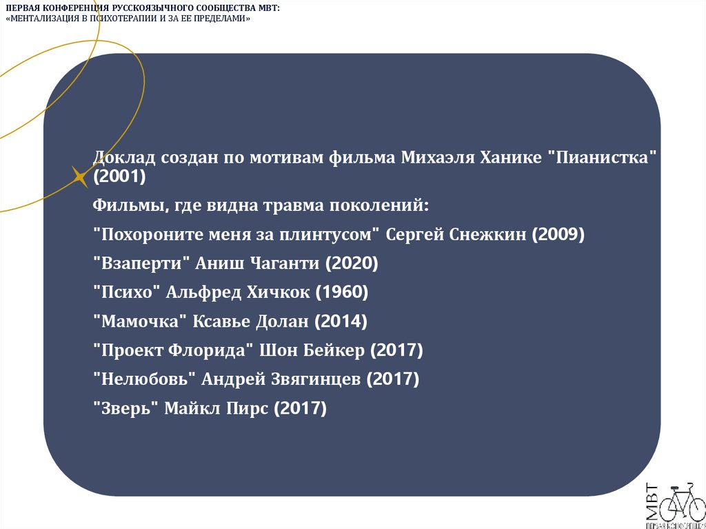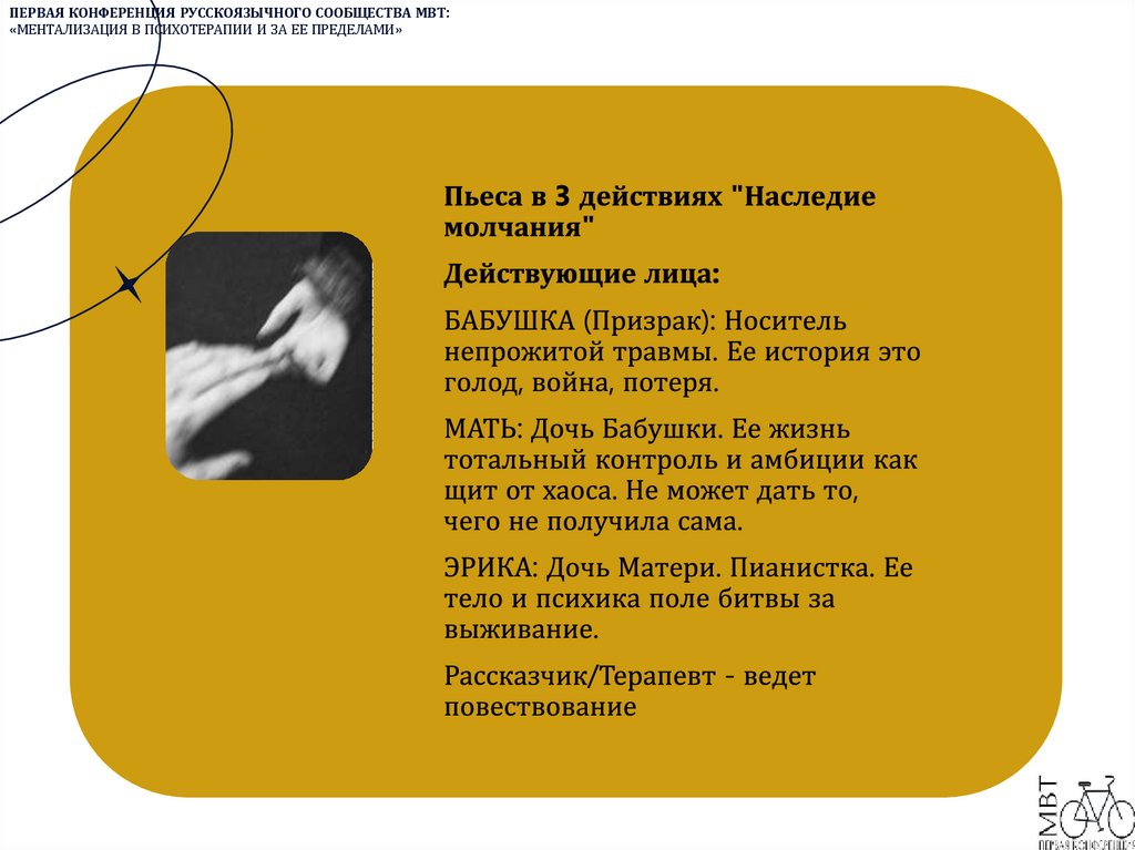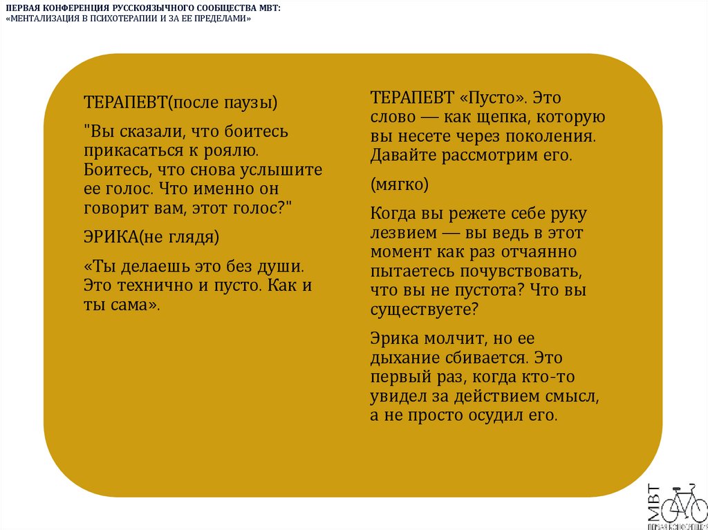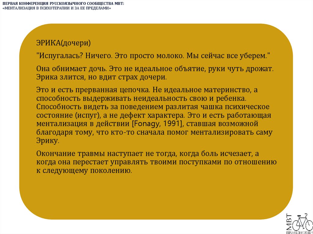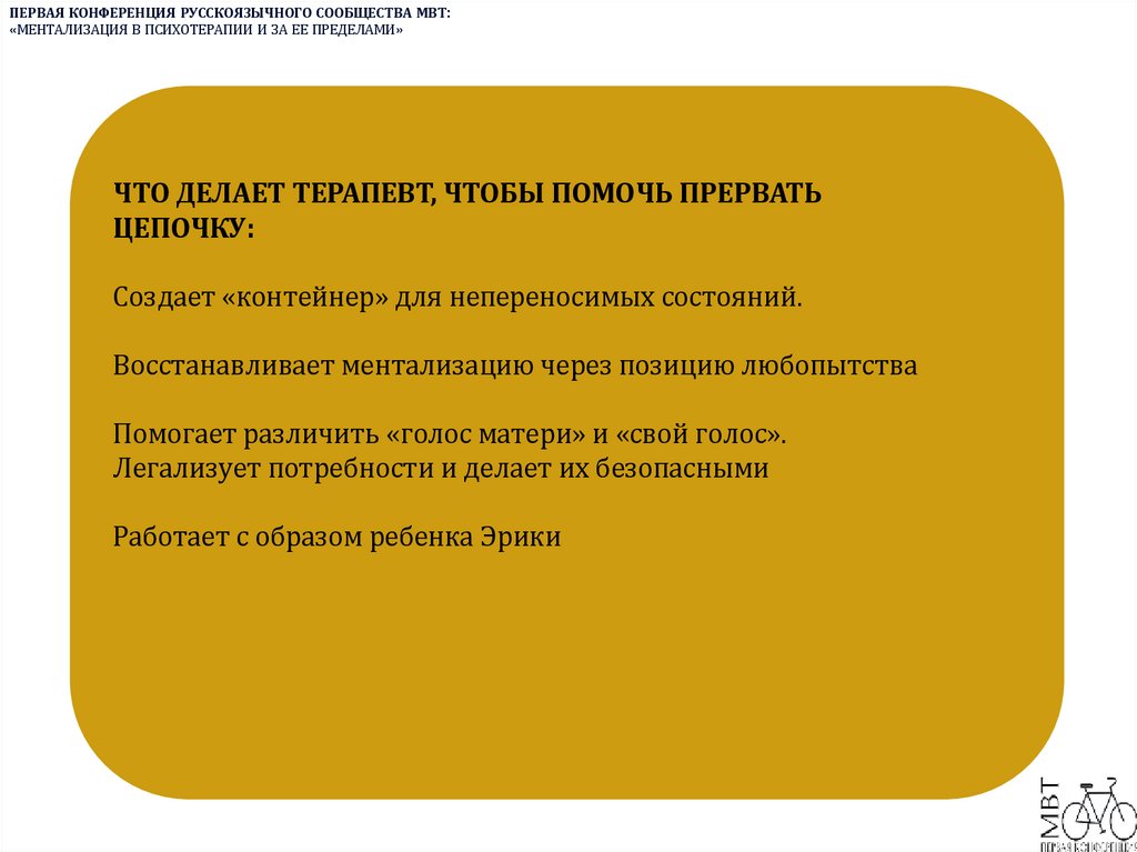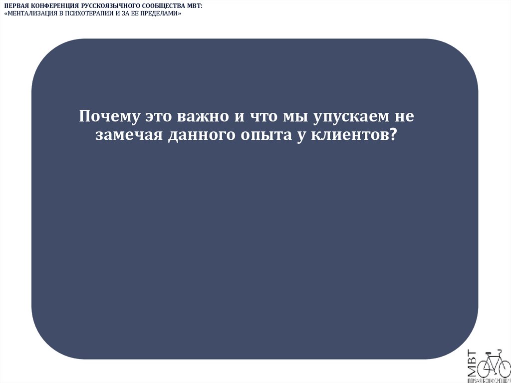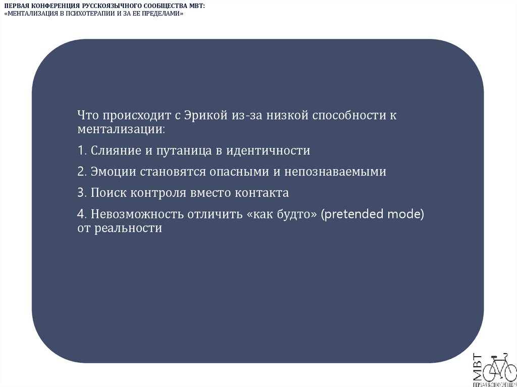 ПЕРВАЯ КОНФЕРЕНЦИЯ РУССКОЯЗЫЧНОГО СООБЩЕСТВА МВТ:«МЕНТАЛИЗАЦИЯ В ПСИХОТЕРАПИИ И ЗА ЕЕ ПРЕДЕЛАМИ»