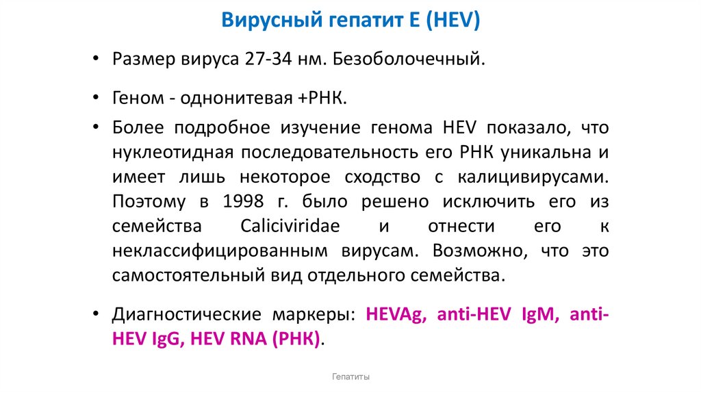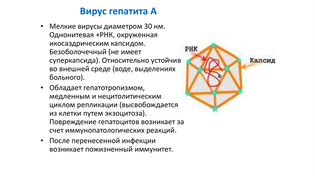 • Вирус гепатита А отличается от других энтеровирусов большей