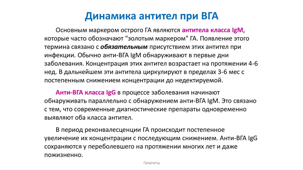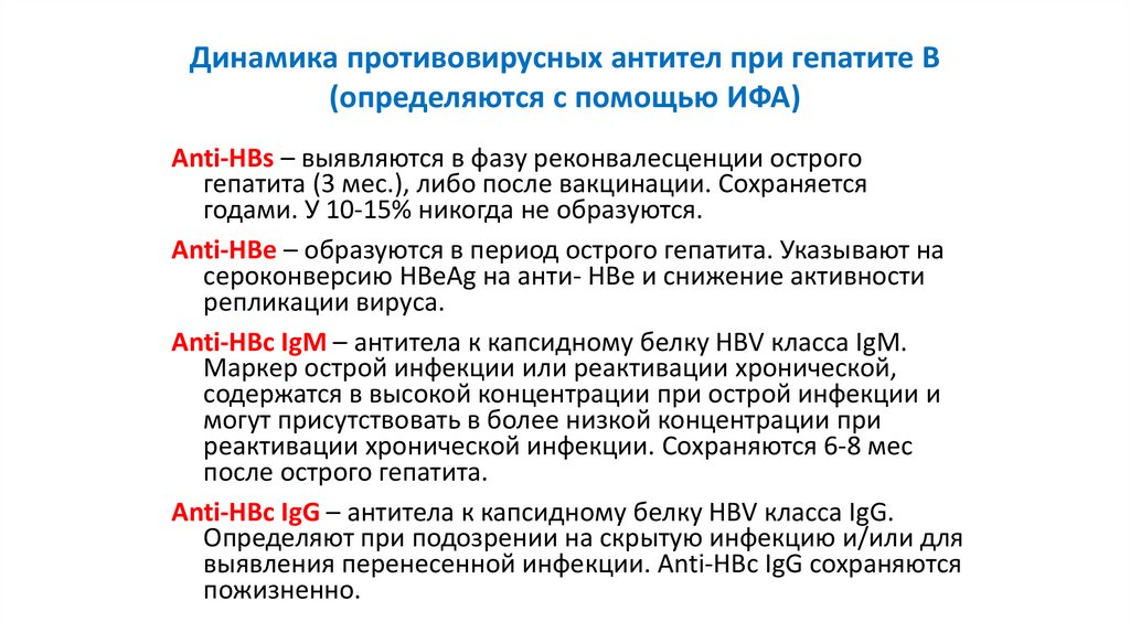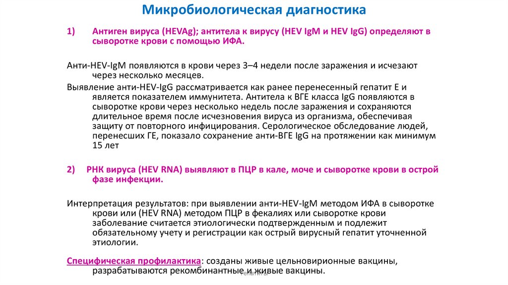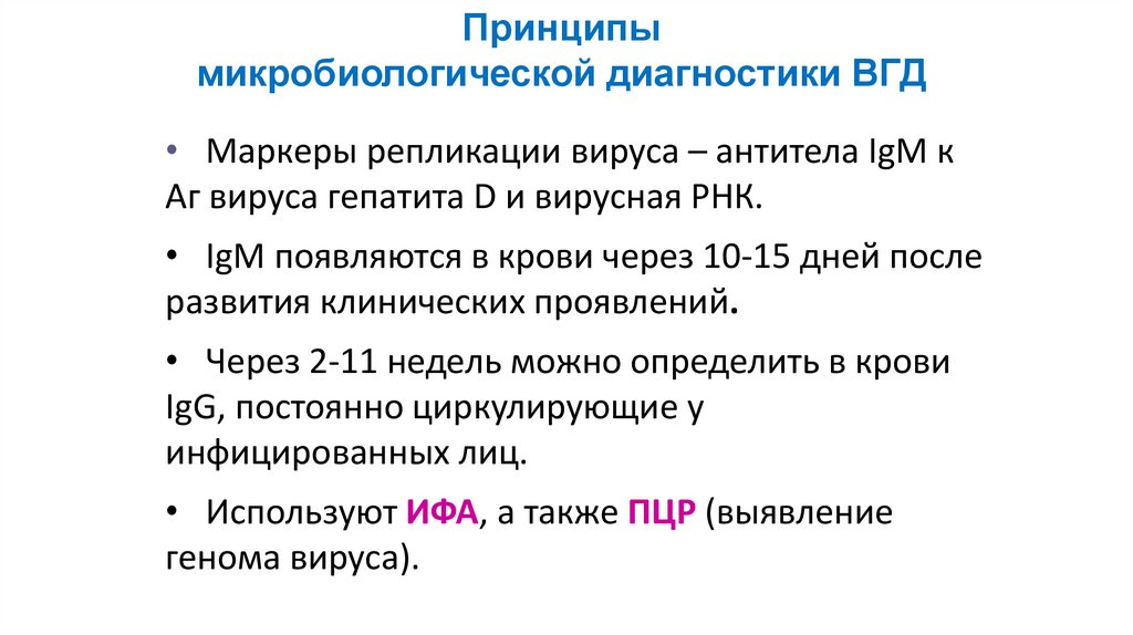 • Маркеры репликации вируса – антитела (IgM) к Аг