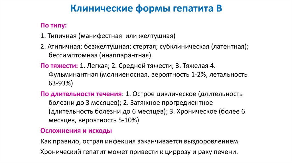 • Выделяют три клинические формы гепатита А: желтушную (1.10 %
