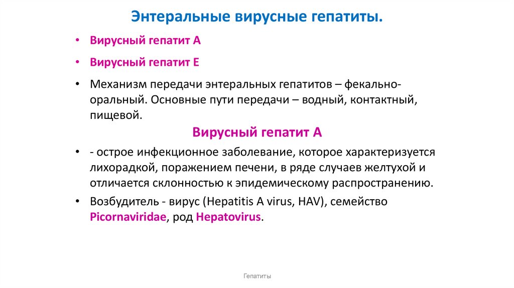 Энтеральные вирусные гепатиты.• Вирусный гепатит A