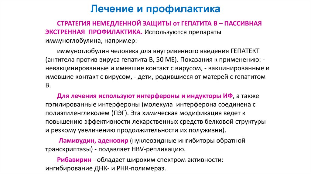 • ЛЕЧЕНИЕ: интерфероны, пролонгированные альфаИФ, индукторы интерферонов, иммуномодуляторы,
