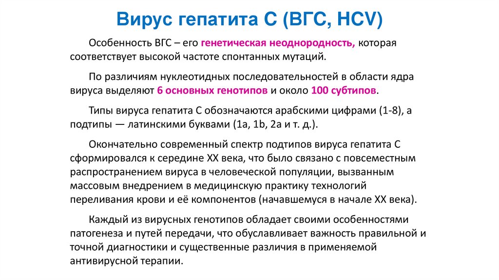 Генетическая неоднородность ВГС способствует переходу патологического процесса в хроническую форму.