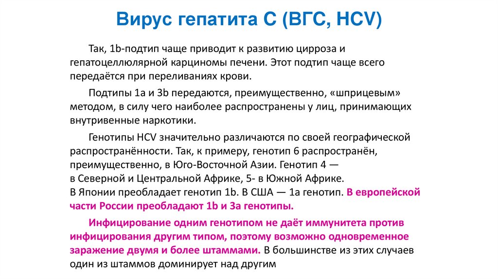 Основное отличие от эпидемиологии гепатита В – более низкая способность вируса гепатита С к передаче от