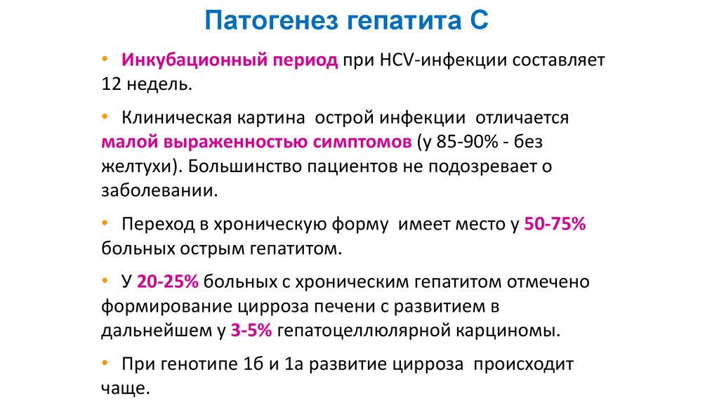 Патогенез гепатита С• Инкубационный период при HCV-инфекции составляет