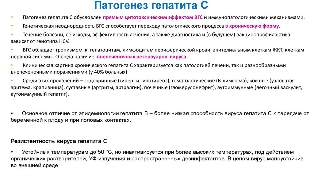 Патогенез гепатита СПатогенез гепатита С обусловлен прямым цитотоксическим эффектом ВГС и иммунопатологическими механизмами.