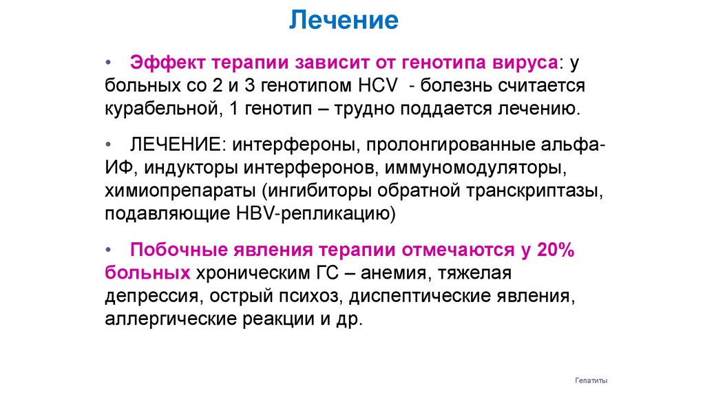 Лечение• Эффект терапии зависит от генотипа вируса: у