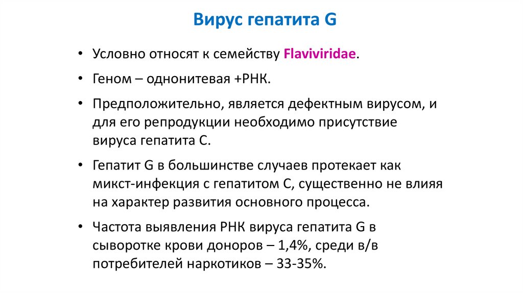 Вирус гепатита G• Условно относят к семейству Flaviviridae.