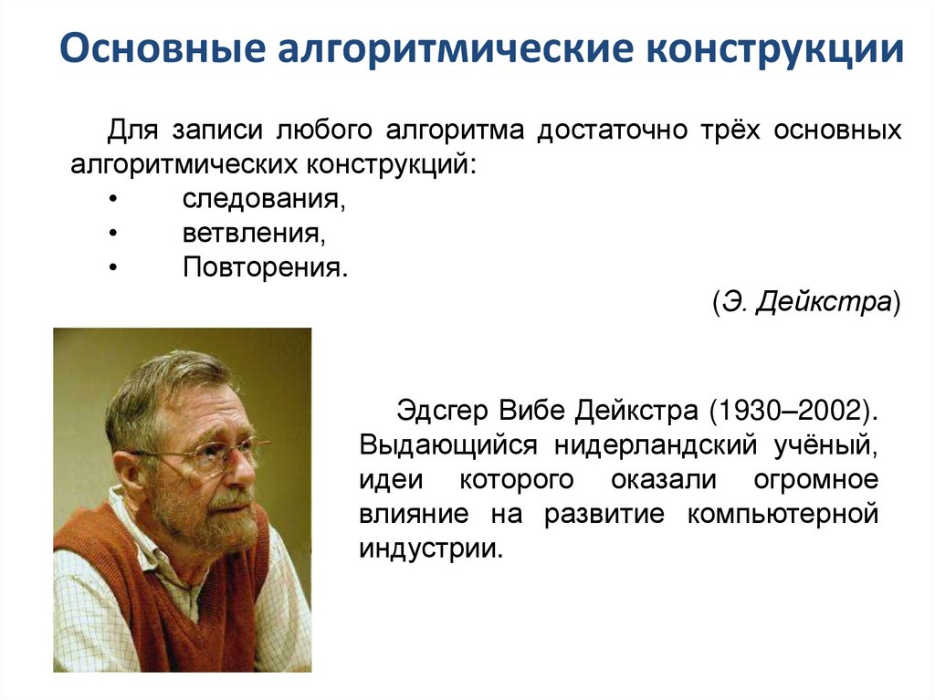 Основные алгоритмические конструкцииДля записи любого алгоритма достаточно трёх основных