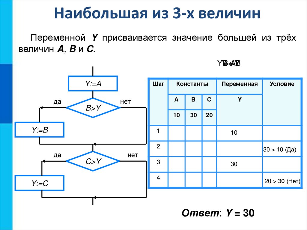 зависимости от результата проверки условия («да» или «нет»)