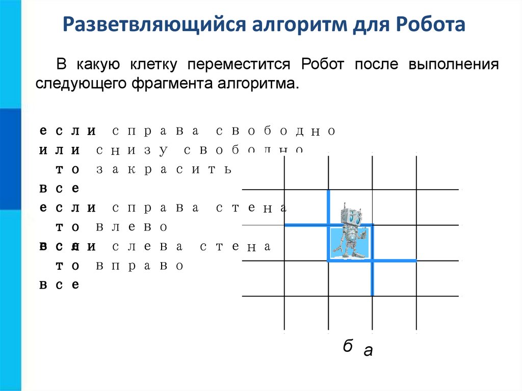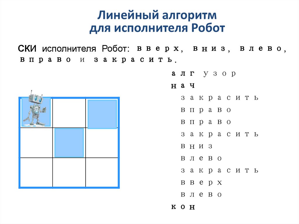 Линейный алгоритмдля исполнителя Робот