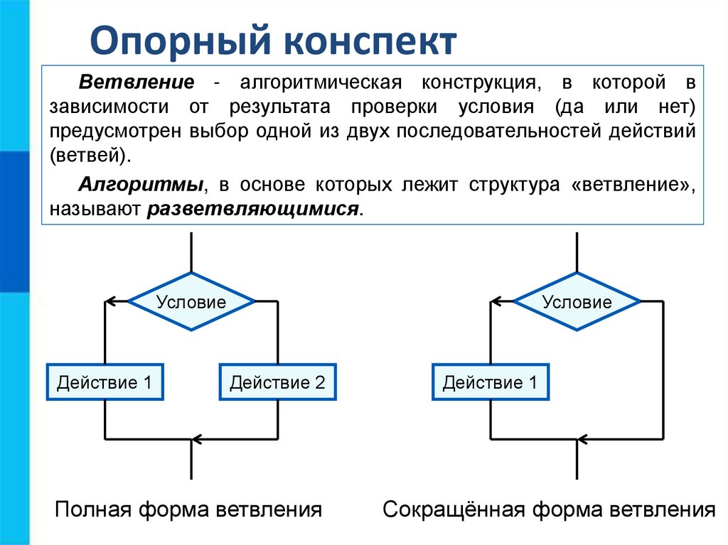 Опорный конспектВетвление - алгоритмическая конструкция, в которой в