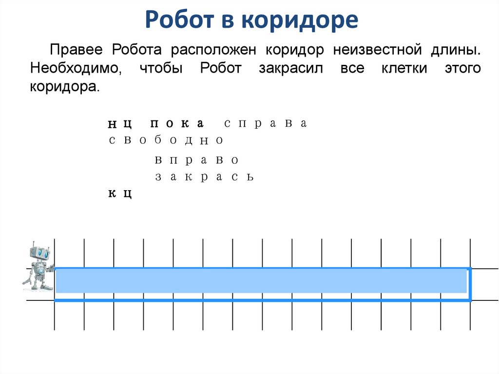 Робот в коридореПравее Робота расположен коридор неизвестной длины.