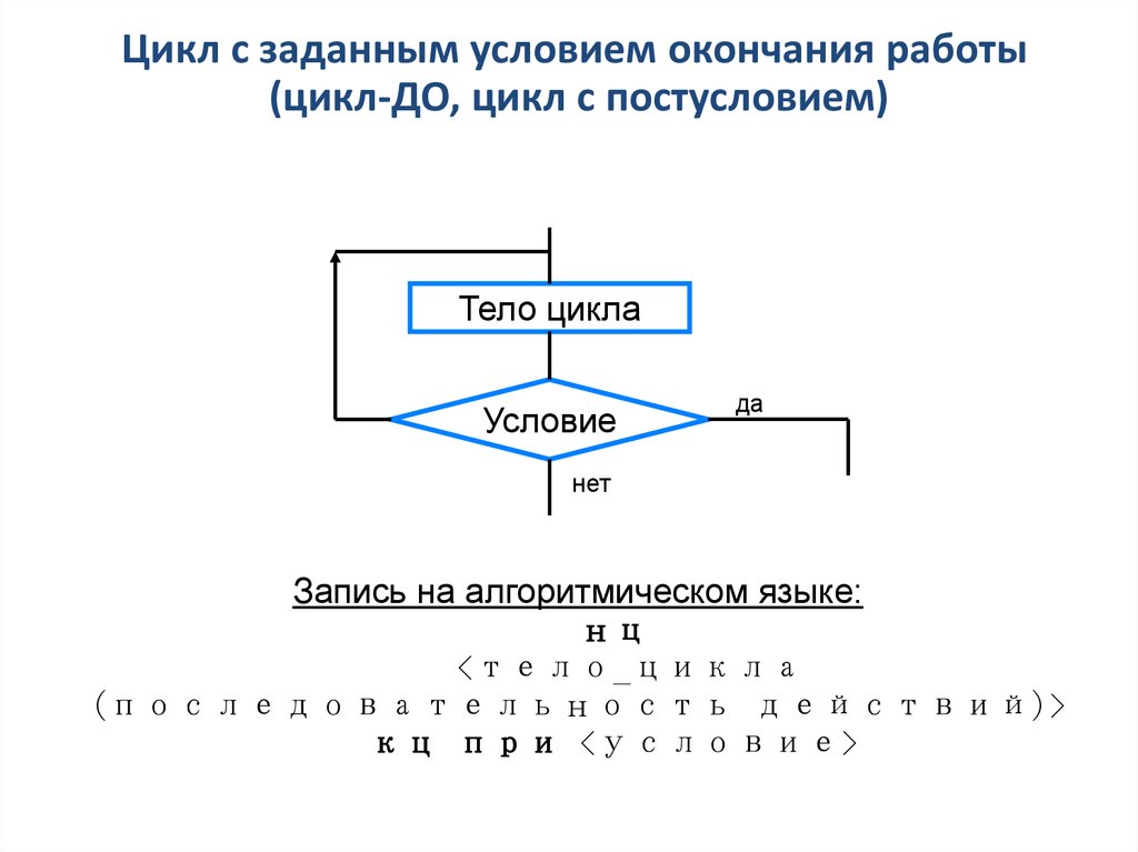 Цикл с заданным условием окончания работы(цикл-ДО, цикл с постусловием)