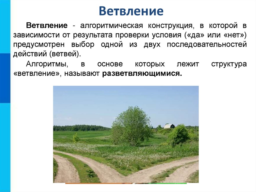 ВетвлениеВетвление - алгоритмическая конструкция, в которой в