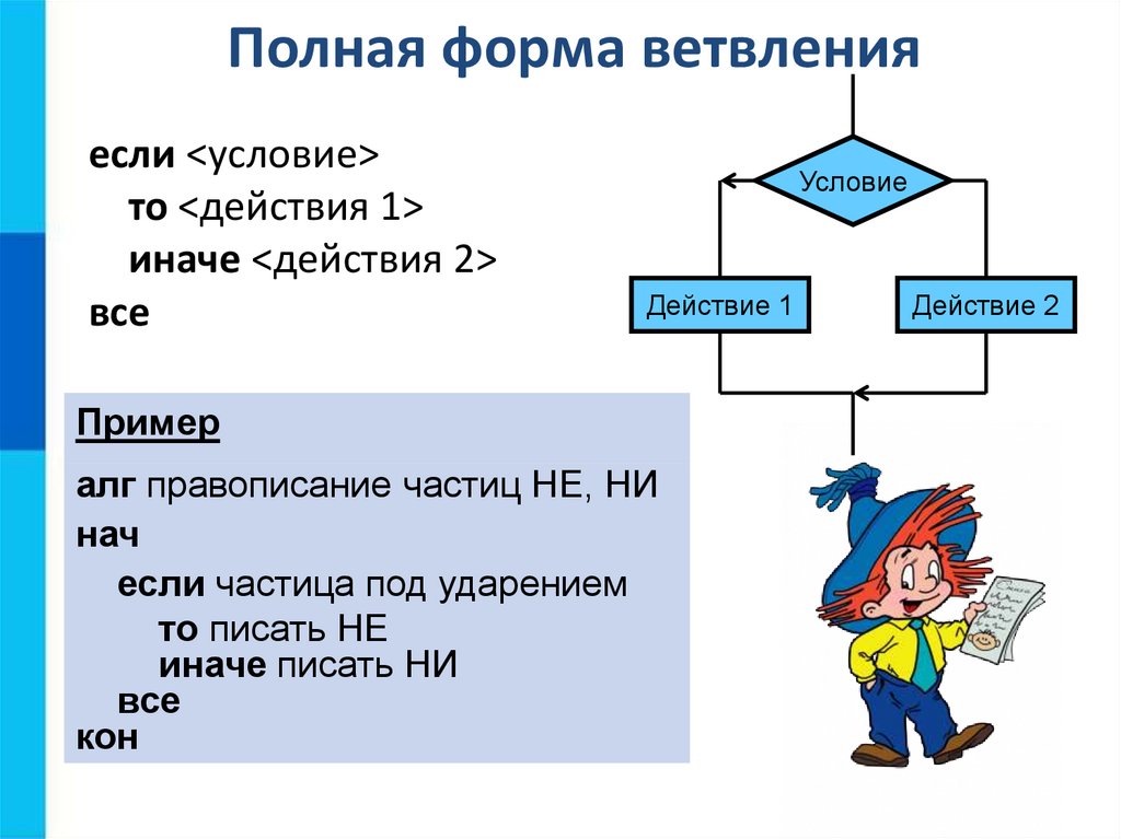 Полная форма ветвленияесли <условие>