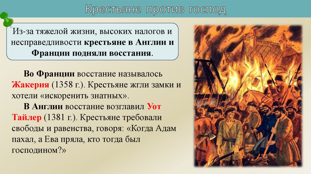 Из-за тяжелой жизни, высоких налогов инесправедливости крестьяне в Англии и