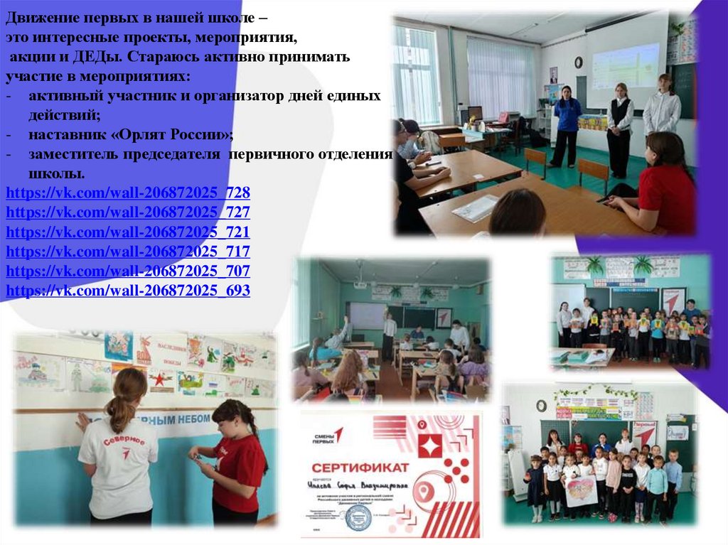 - активный участник и организатор дней единых