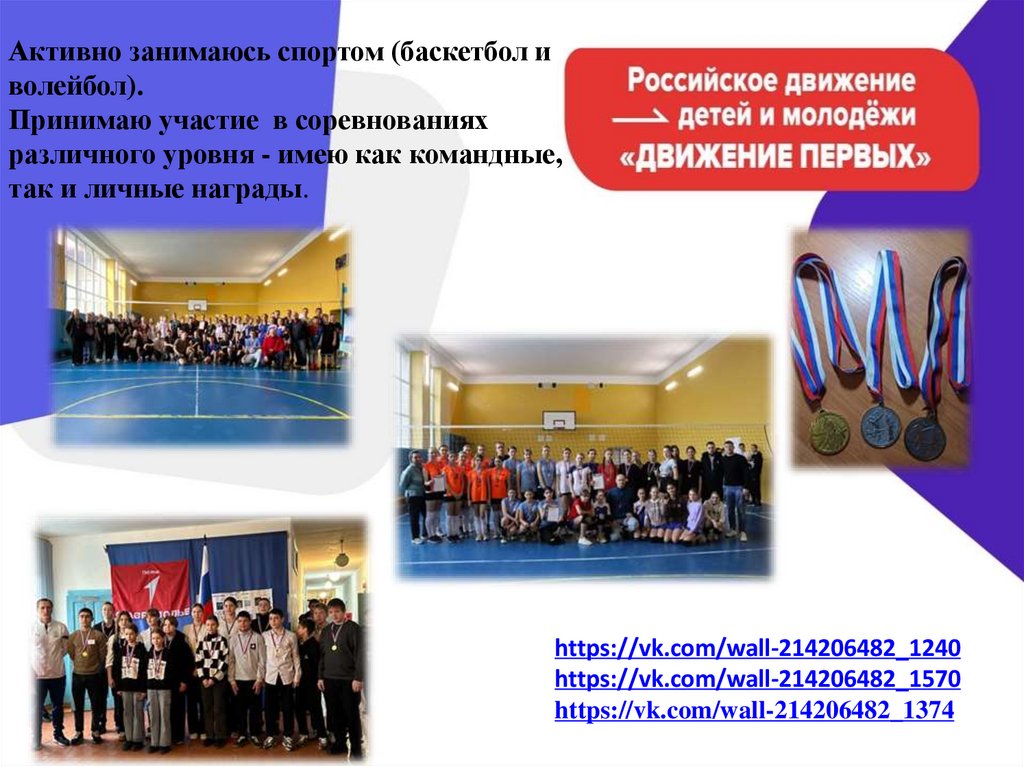 Активно занимаюсь спортом (баскетбол иволейбол).