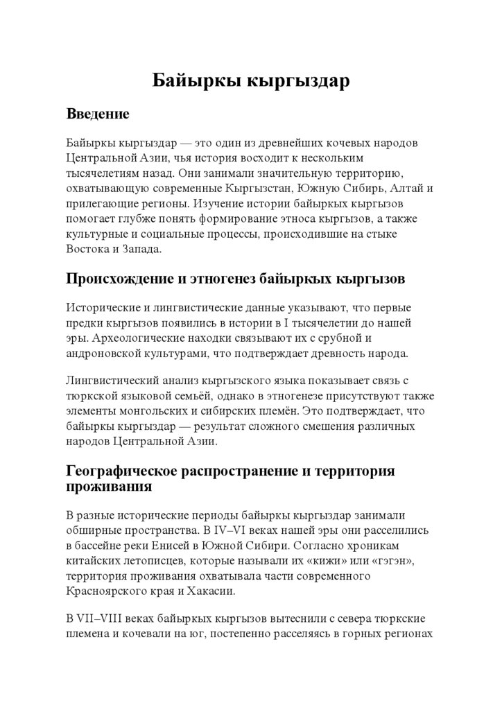 прилегающие регионы. Изучение истории байыркых кыргызов