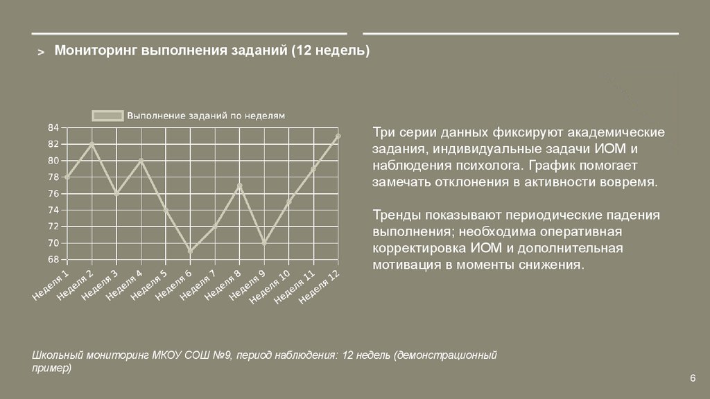 Мониторинг выполнения заданий (12 недель)Три серии данных фиксируют академические